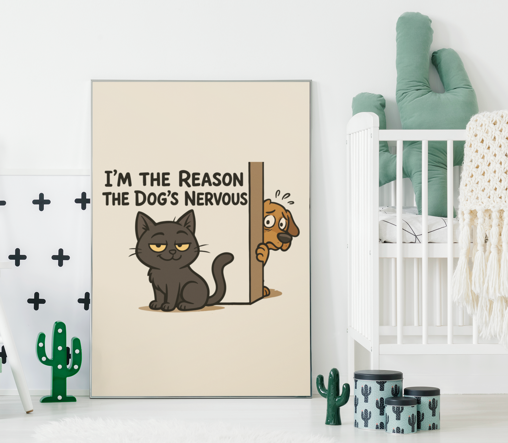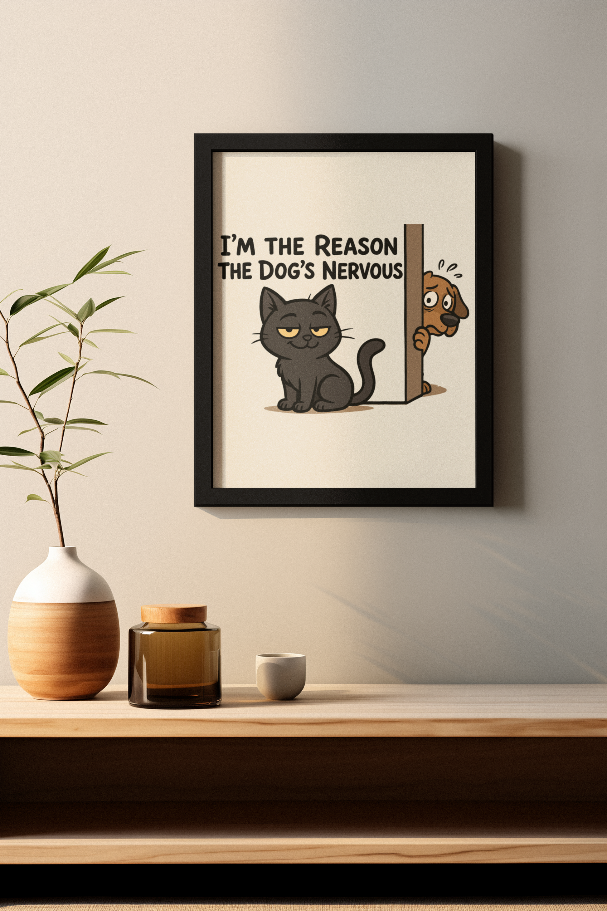 Funny Cat and Dog Vertical Poster - "I'm the Reason the Dog's Nervous"