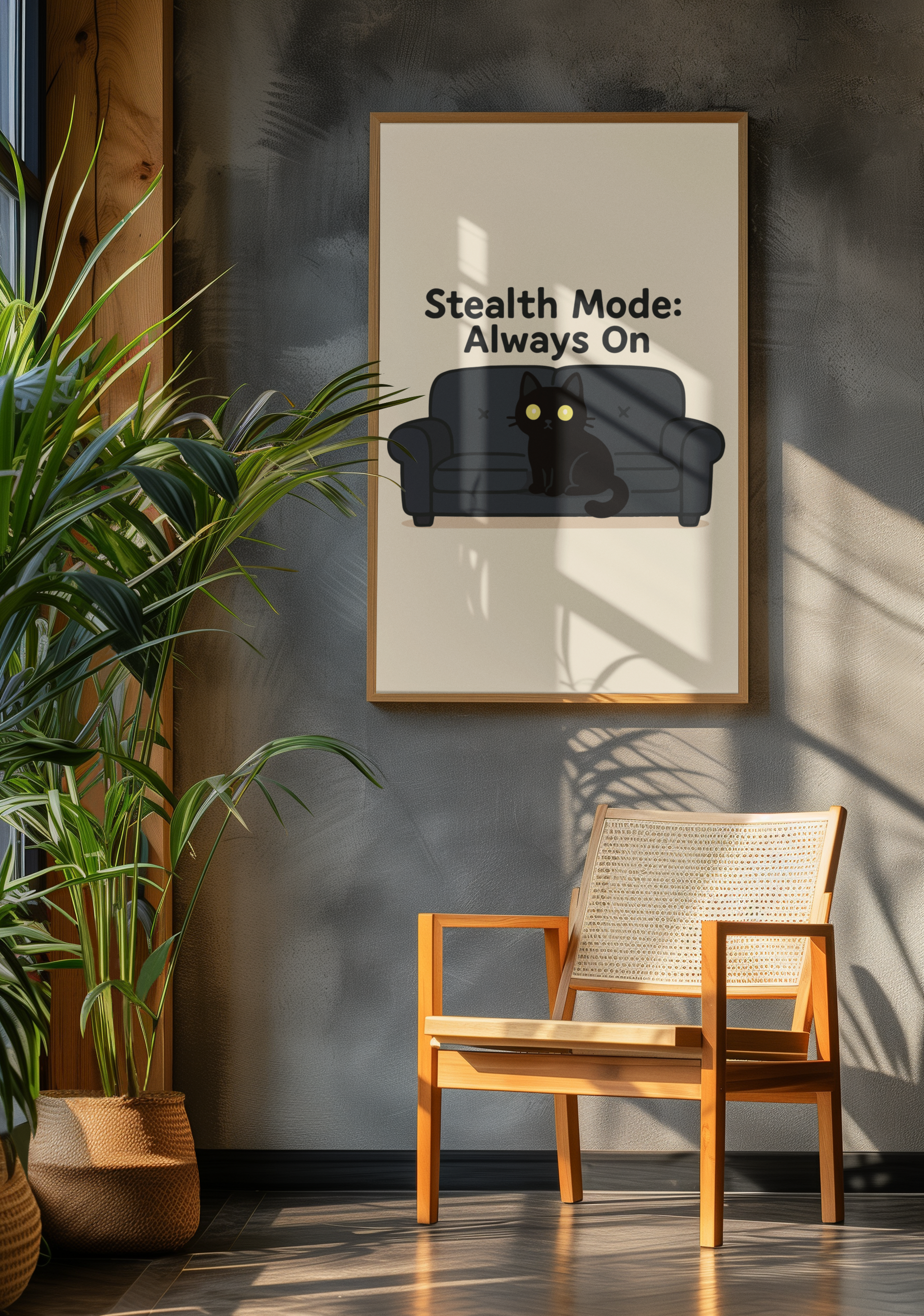 Funny Cat Memes: Cool Cat Wall Art Poster - "Stealth Mode: Always On" - Perfect for Cat Lovers