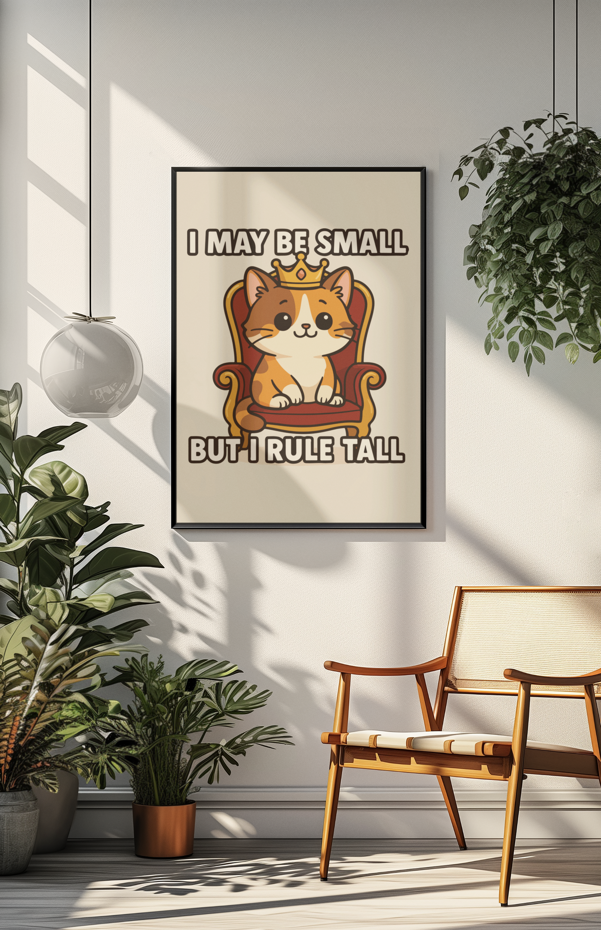 Funny Cat Memes: Cute Cat Poster - "I May Be Small But I Rule Tall" - Adorable Wall Art for Cat Lovers