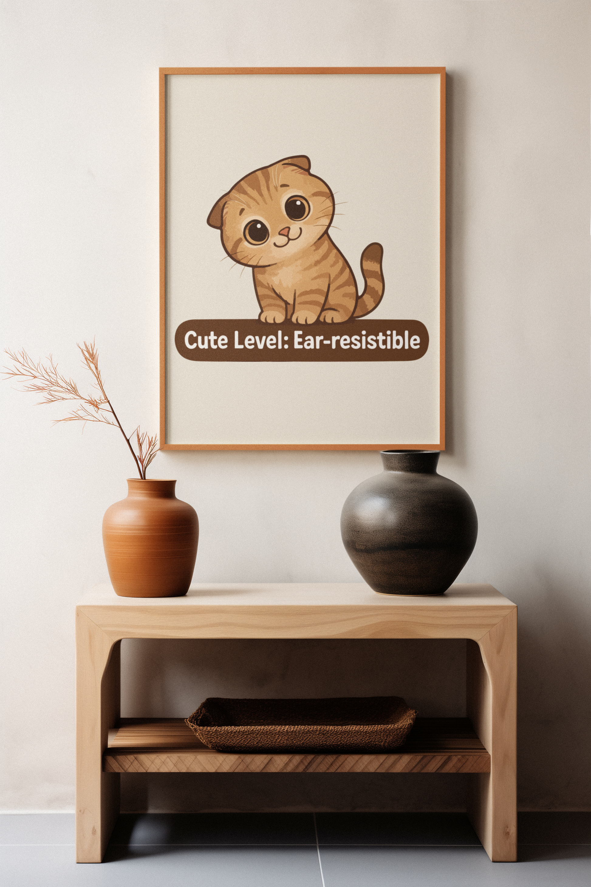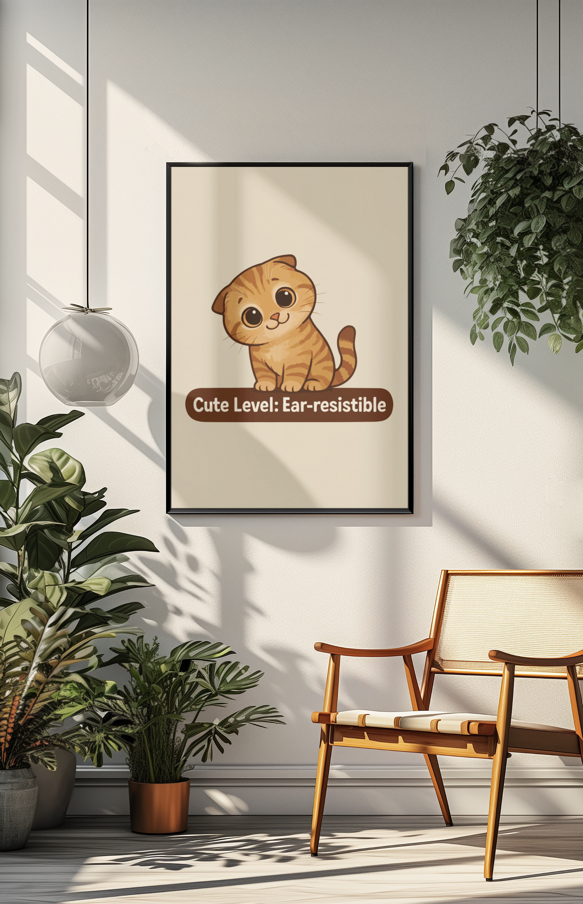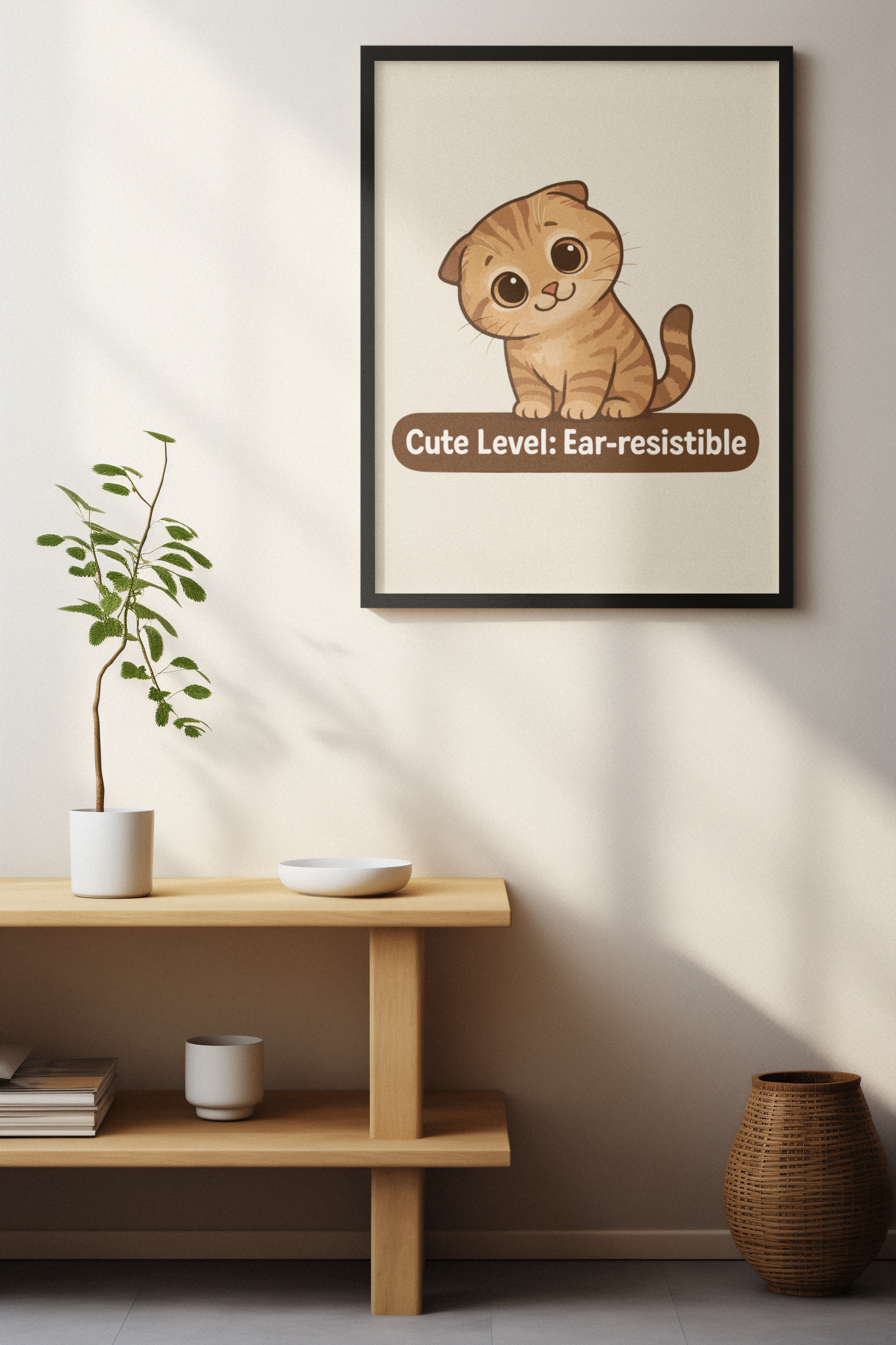 Brighten up your space with our charming Matte Vertical Posters that capture a delightful mix of whimsy and warmth. Perfect for cat lovers, these vibrant pieces bring a joyful vibe to any room, making them an ideal addition to a cozy living area or a playful child's bedroom. The enchanting design features an adorable cat that showcases the "Cute Level: Ear-resistible"—a saying that brings smiles and a sense of joy. These posters are great for various occasions, including housewarming gifts, birthday celebrations, or just because! Ideal for anyone looking to enhance their decor with a touch of personality, they fit seamlessly into modern or cute themed spaces.