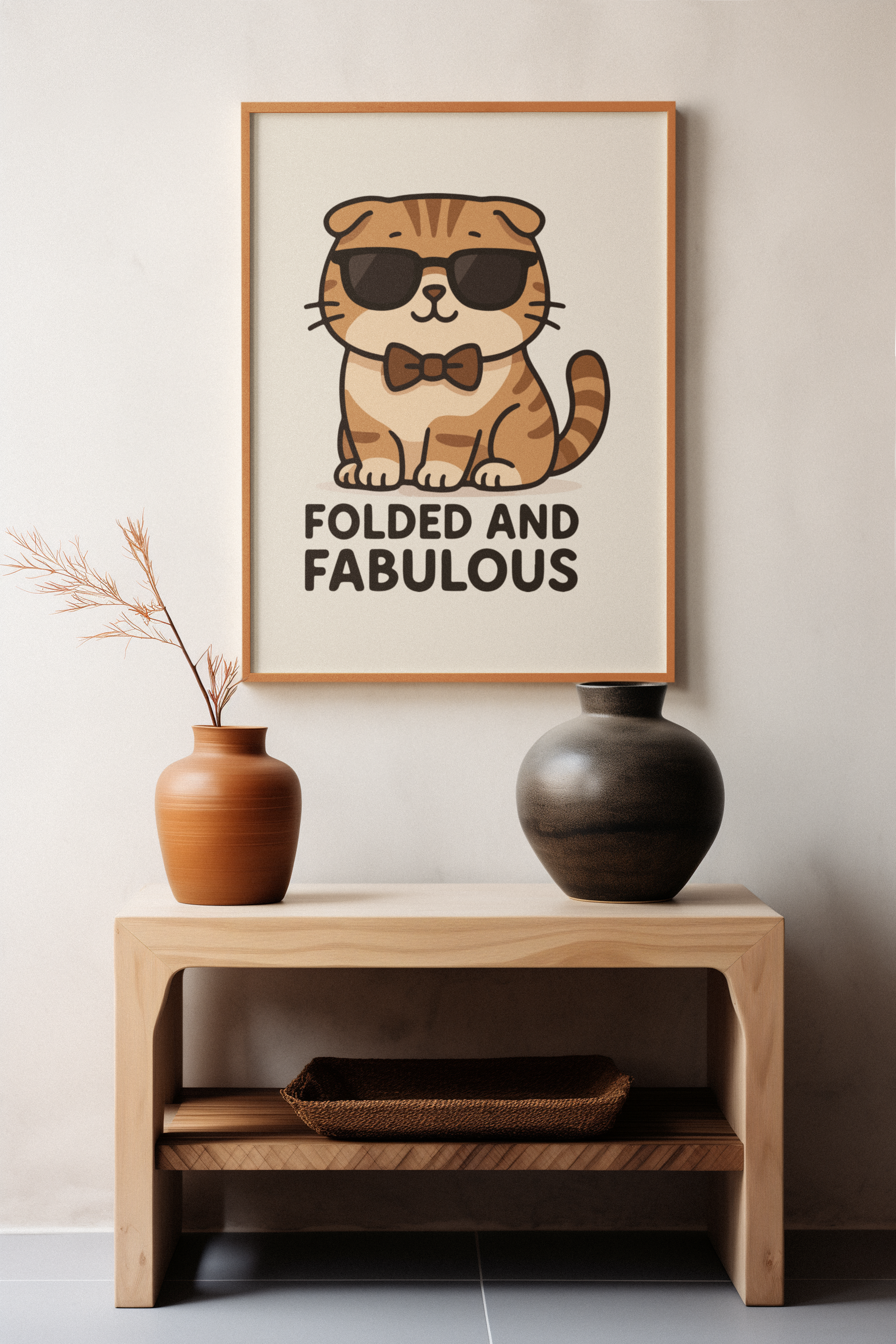 Funny Cat Memes: Folded and Fabulous Cat Art Poster - Matte Vertical Wall Decor
