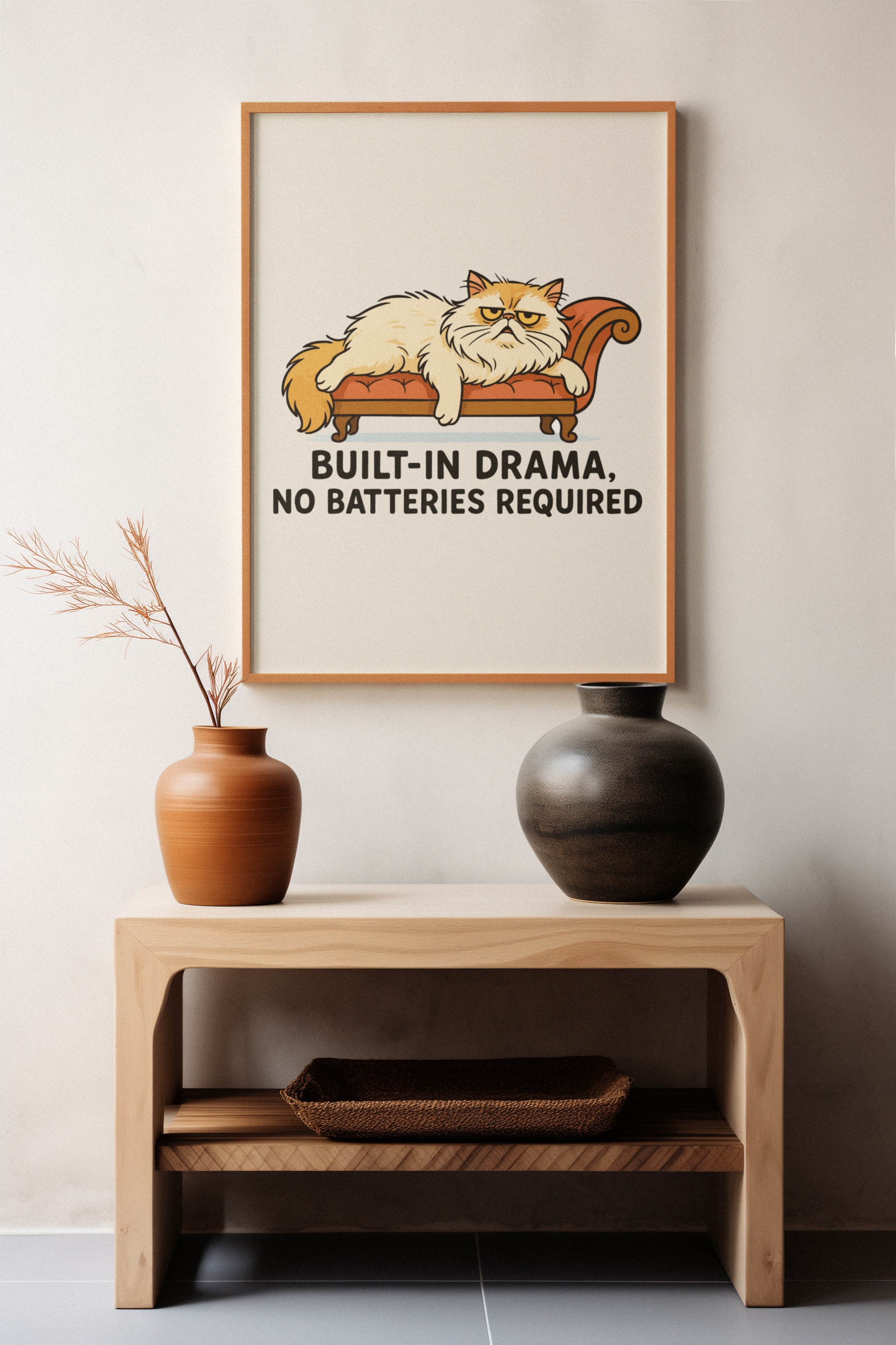 Funny Cat Memes Poster - Built-in Drama, No Batteries Required, Cute Cat Wall Art