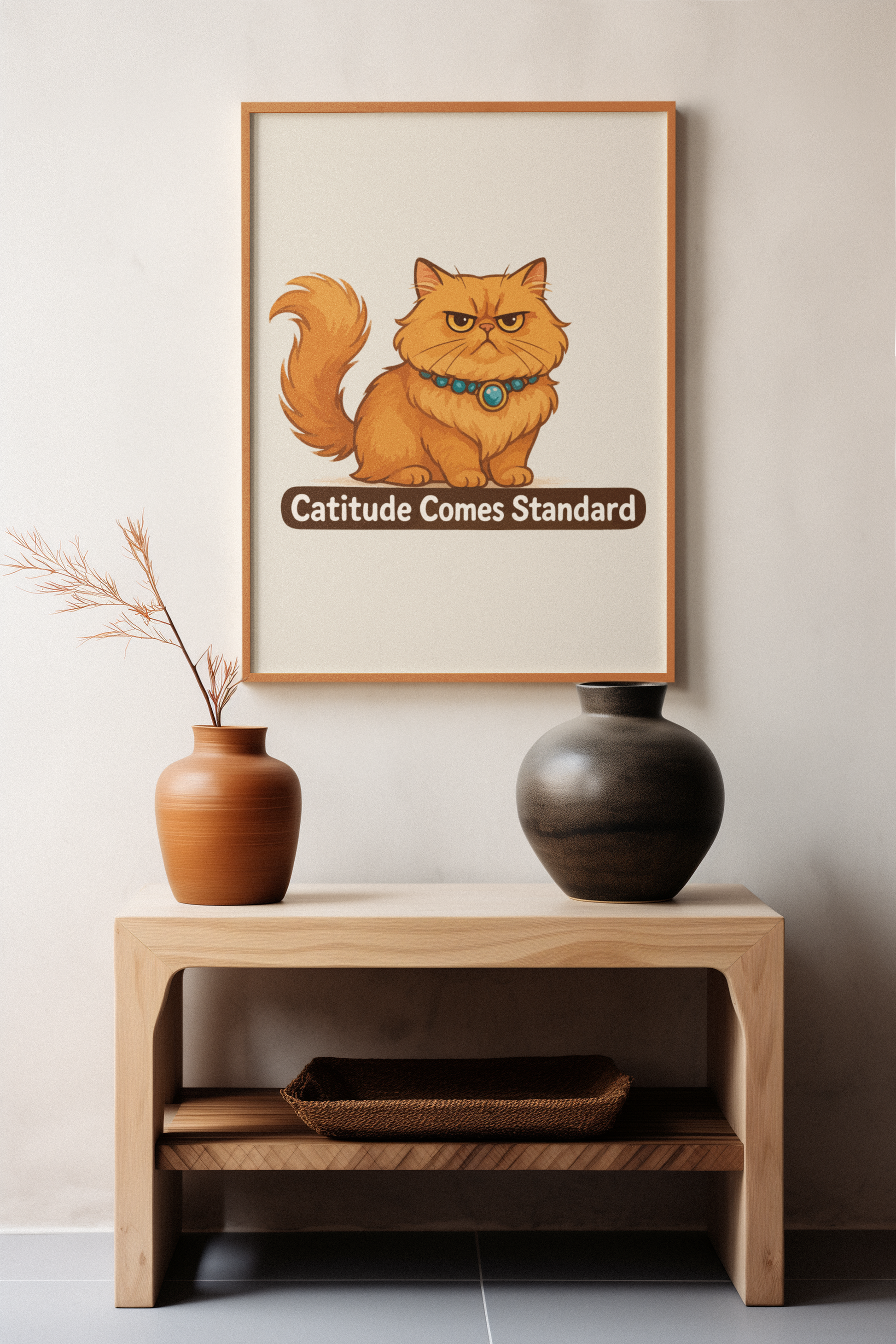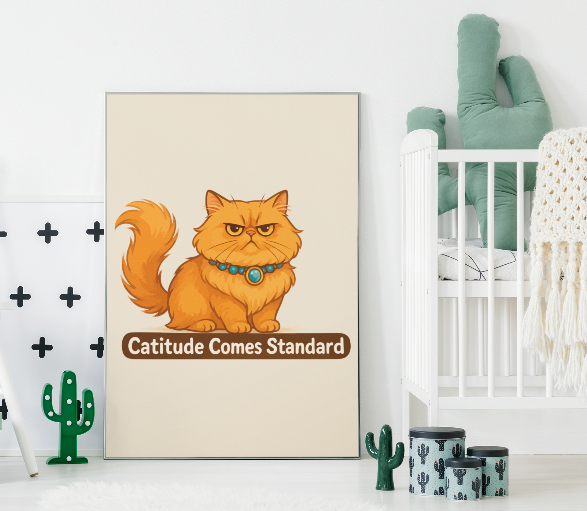 Funny Cat Memes Poster - 'Catitude Comes Standard' - Matte Vertical Home Decor