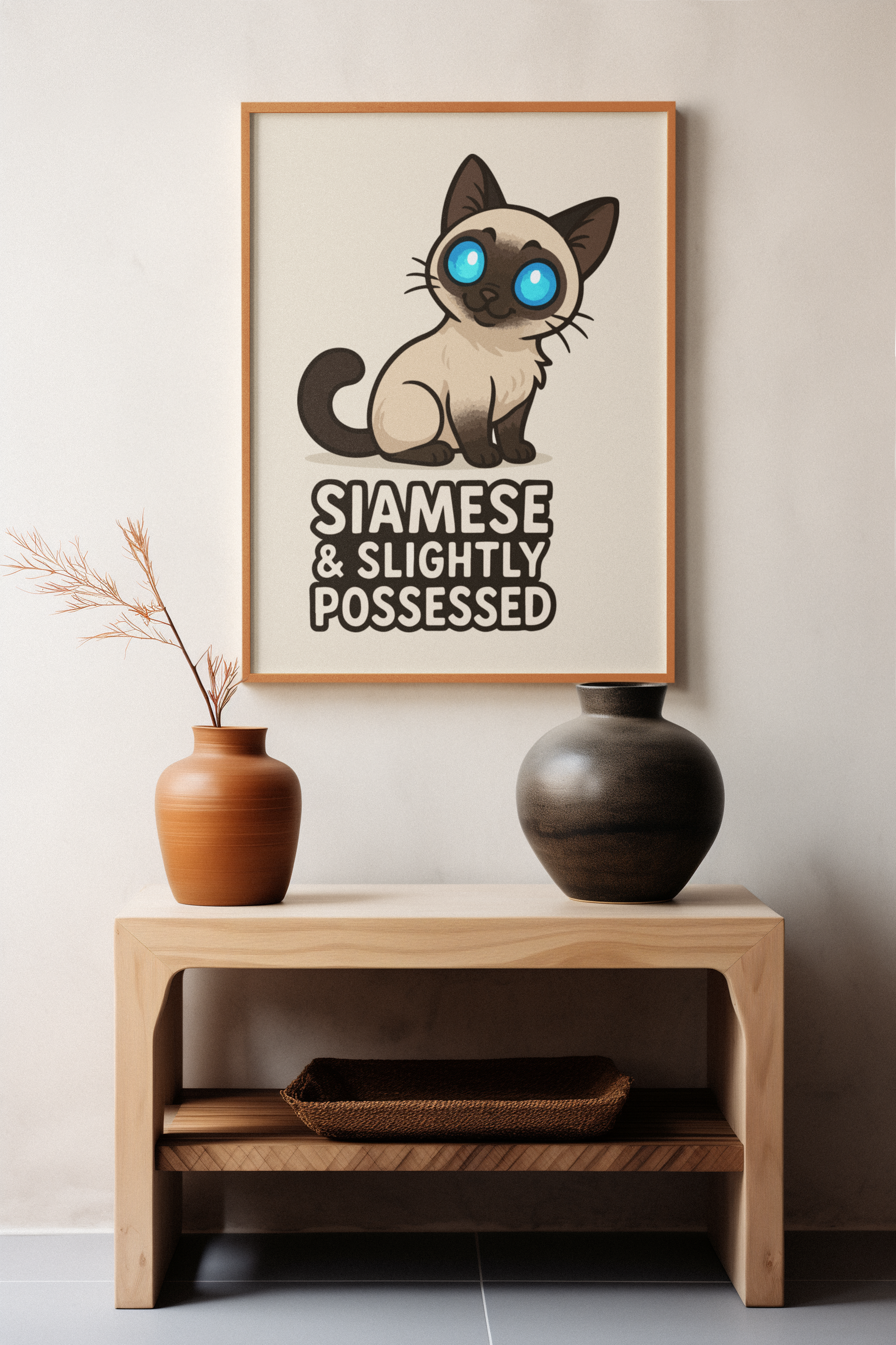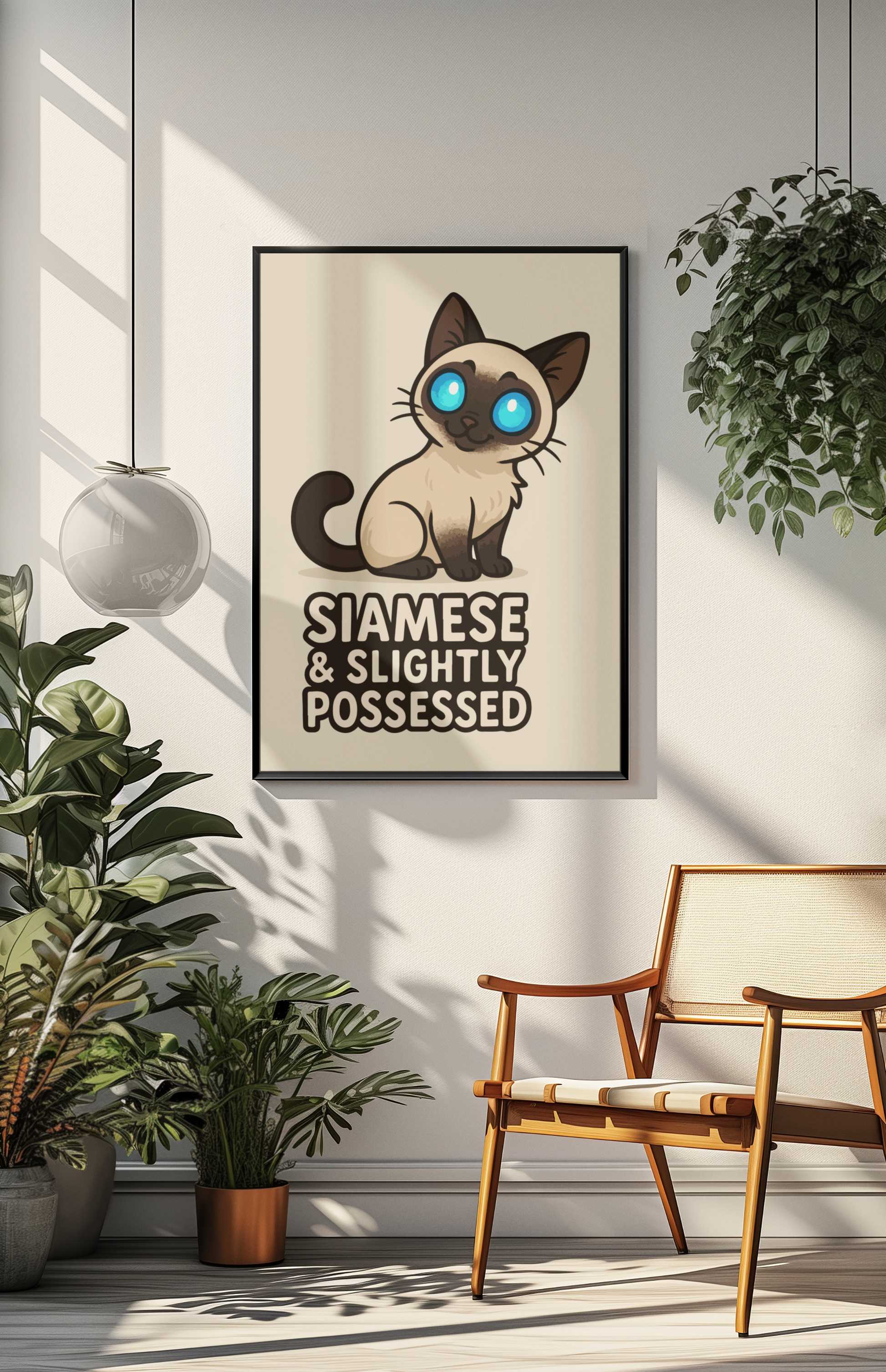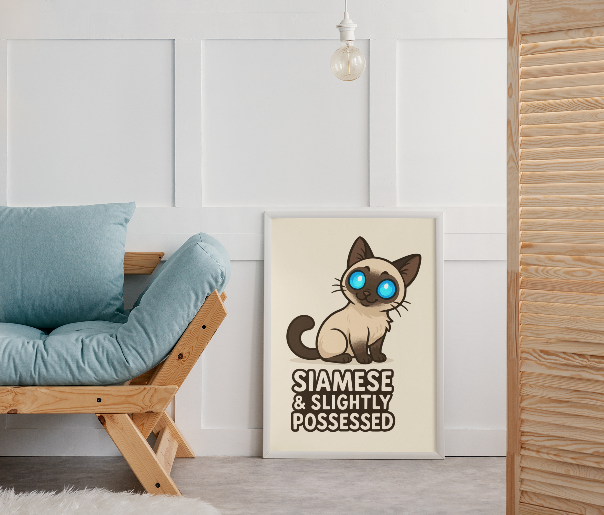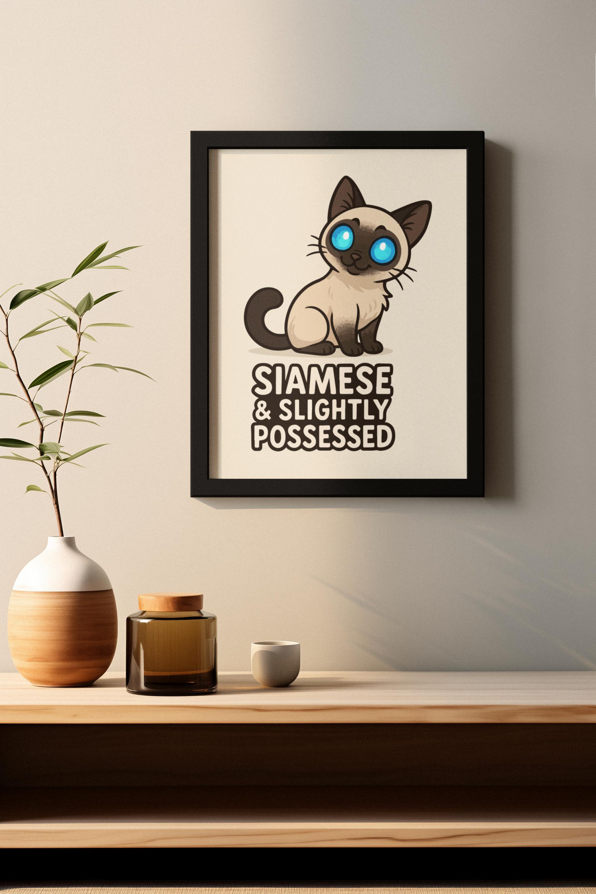 Funny Cat Memes: Siamese Cat Poster - Slightly Possessed Art Print