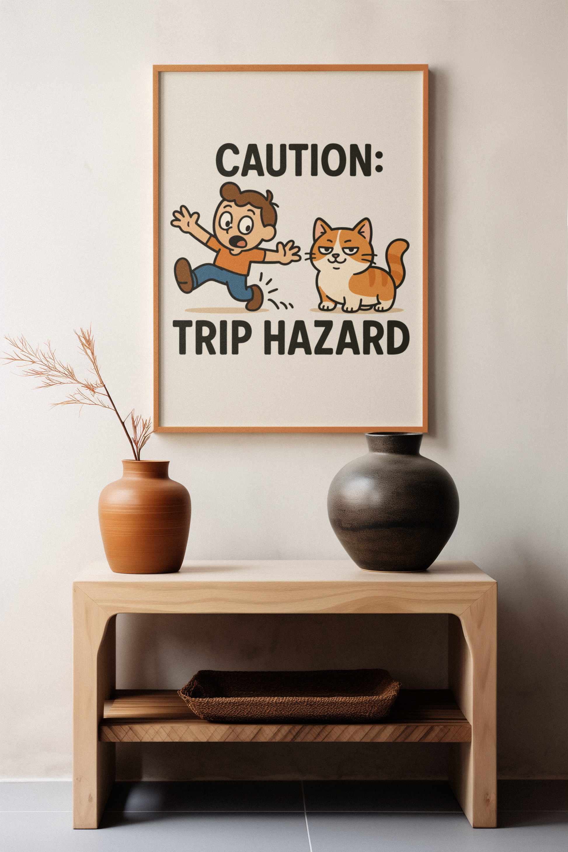 Funny Cat Memes: Whimsical Cat Warning Poster - Caution: Trip Hazard
